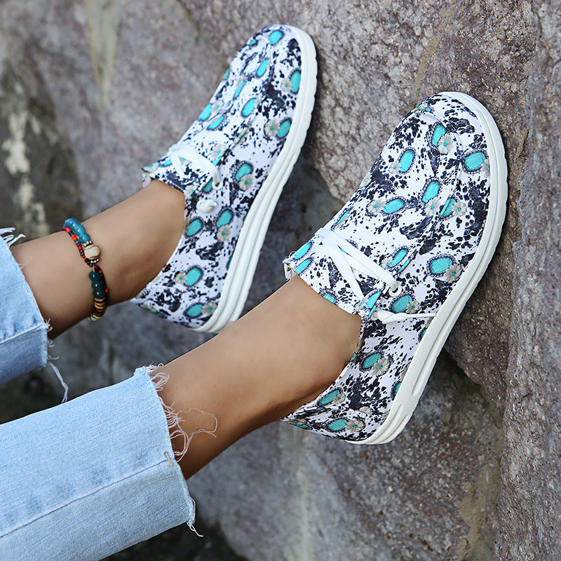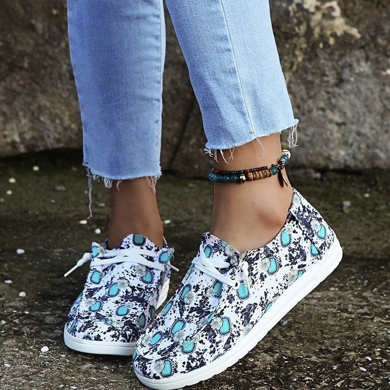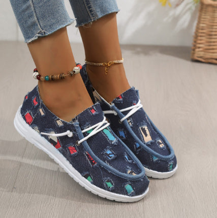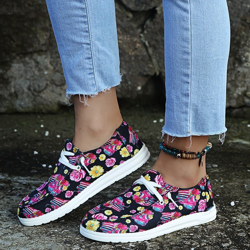 • Loafers Women Sunflower Print Flats Casual Canvas Shoes Non-lace Lazy Shoes